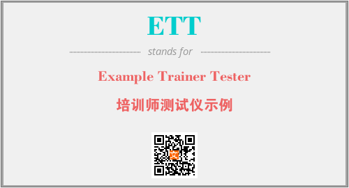 英文缩略词“ETT”经常作为“Example Trainer Tester”的英文缩写来使用,中文表示:“培训师测试仪示例”。本文将详细介绍英文缩写词ETT所代表英文单词,其对应的中文拼音、详细解释以及在英语中的流行度。此外,还有关于缩略词ETT的分类、应用领域及相关应用示例等。