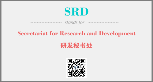 上述内容是“Secretariat for Research and Development”作为“SRD”的缩写,解释为“研发秘书处”时的信息,以及英文缩略词SRD所代表的英文单词,其对应的中文拼音、详细解释以及在英文中的流行度和相关分类、应用领域及应用示例等。