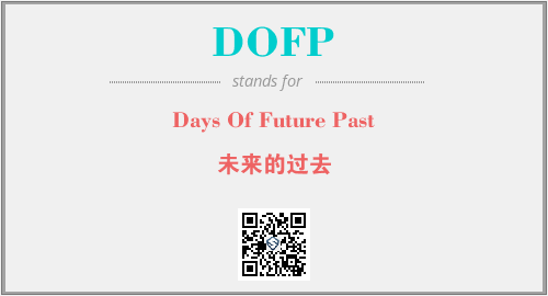 英文缩略词“DOFP”经常作为“Days Of Future Past”的英文缩写来使用,中文表示:“未来的过去”。本文将详细介绍英文缩写词DOFP所代表英文单词,其对应的中文拼音、详细解释以及在英语中的流行度。此外,还有关于缩略词DOFP的分类、应用领域及相关应用示例等。