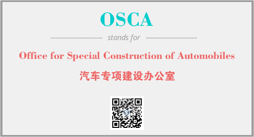 上述内容是“Office for Special Construction of Automobiles”作为“OSCA”的缩写,解释为“汽车专项建设办公室”时的信息,以及英文缩略词OSCA所代表的英文单词,其对应的中文拼音、详细解释以及在英文中的流行度和相关分类、应用领域及应用示例等。