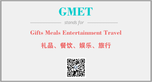 上述内容是“Gifts Meals Entertainment Travel”作为“GMET”的缩写,解释为“礼品、餐饮、娱乐、旅行”时的信息,以及英文缩略词GMET所代表的英文单词,其对应的中文拼音、详细解释以及在英文中的流行度和相关分类、应用领域及应用示例等。