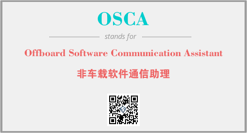 上述内容是“Offboard Software Communication Assistant”作为“OSCA”的缩写,解释为“非车载软件通信助理”时的信息,以及英文缩略词OSCA所代表的英文单词,其对应的中文拼音、详细解释以及在英文中的流行度和相关分类、应用领域及应用示例等。