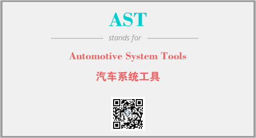 英文缩略词“AST”经常作为“Automotive System Tools”的英文缩写来使用,中文表示:“汽车系统工具”。本文将详细介绍英文缩写词AST所代表英文单词,其对应的中文拼音、详细解释以及在英语中的流行度。此外,还有关于缩略词AST的分类、应用领域及相关应用示例等。