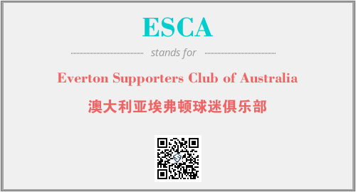 上述内容是“Everton Supporters Club of Australia”作为“ESCA”的缩写,解释为“澳大利亚埃弗顿球迷俱乐部”时的信息,以及英文缩略词ESCA所代表的英文单词,其对应的中文拼音、详细解释以及在英文中的流行度和相关分类、应用领域及应用示例等。