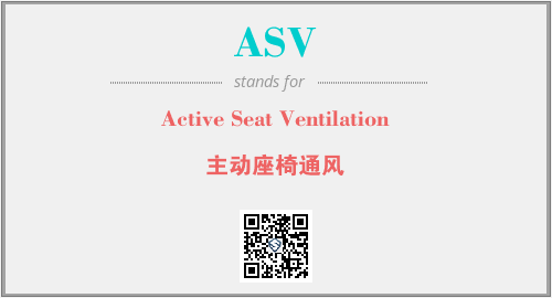 英文缩略词“ASV”经常作为“Active Seat Ventilation”的英文缩写来使用,中文表示:“主动座椅通风”。本文将详细介绍英文缩写词ASV所代表英文单词,其对应的中文拼音、详细解释以及在英语中的流行度。此外,还有关于缩略词ASV的分类、应用领域及相关应用示例等。