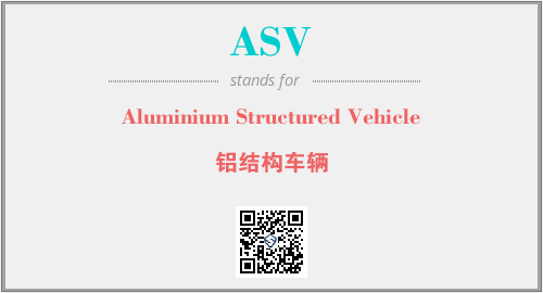 英文缩略词“ASV”经常作为“Aluminium Structured Vehicle”的英文缩写来使用,中文表示:“铝结构车辆”。本文将详细介绍英文缩写词ASV所代表英文单词,其对应的中文拼音、详细解释以及在英语中的流行度。此外,还有关于缩略词ASV的分类、应用领域及相关应用示例等。