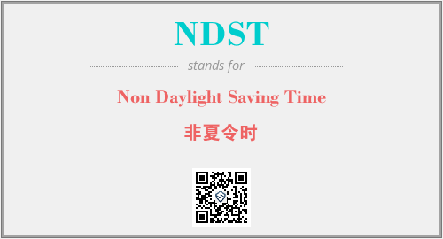 英文缩略词“NDST”经常作为“Non Daylight Saving Time”的英文缩写来使用,中文表示:“非夏令时”。本文将详细介绍英文缩写词NDST所代表英文单词,其对应的中文拼音、详细解释以及在英语中的流行度。此外,还有关于缩略词NDST的分类、应用领域及相关应用示例等。