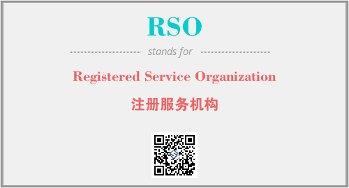 上述内容是“Registered Service Organization”作为“RSO”的缩写,解释为“注册服务机构”时的信息,以及英文缩略词RSO所代表的英文单词,其对应的中文拼音、详细解释以及在英文中的流行度和相关分类、应用领域及应用示例等。