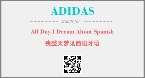 英文缩略词“ADIDAS”经常作为“All Day I Dream About Spanish”的英文缩写来使用,中文表示:“我整天梦见西班牙语”。本文将详细介绍英文缩写词ADIDAS所代表英文单词,其对应的中文拼音、详细解释以及在英语中的流行度。此外,还有关于缩略词ADIDAS的分类、应用领域及相关应用示例等。