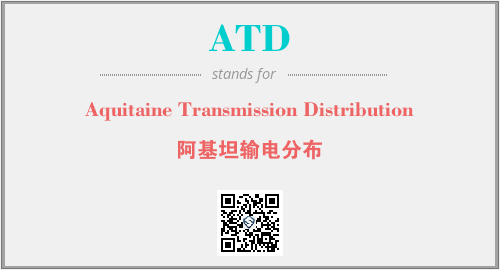 上述内容是“Aquitaine Transmission Distribution”作为“ATD”的缩写,解释为“阿基坦输电分布”时的信息,以及英文缩略词ATD所代表的英文单词,其对应的中文拼音、详细解释以及在英文中的流行度和相关分类、应用领域及应用示例等。