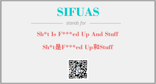 以上为Sh*t Is F***ed Up And Stuff英文缩略词SIFUAS的中文解释,以及该英文缩写在英语的流行度、分类和应用领域方面的信息。