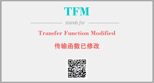 上述内容是“Transfer Function Modified”作为“TFM”的缩写,解释为“传输函数已修改”时的信息,以及英文缩略词TFM所代表的英文单词,其对应的中文拼音、详细解释以及在英文中的流行度和相关分类、应用领域及应用示例等。