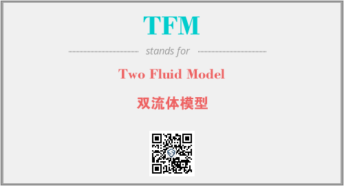 上述内容是“Two Fluid Model”作为“TFM”的缩写,解释为“双流体模型”时的信息,以及英文缩略词TFM所代表的英文单词,其对应的中文拼音、详细解释以及在英文中的流行度和相关分类、应用领域及应用示例等。