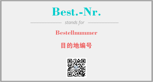 上述内容是“Bestellnummer”作为“Best.-Nr.”的缩写,解释为“目的地编号”时的信息,以及英文缩略词Best.-Nr.所代表的英文单词,其对应的中文拼音、详细解释以及在英文中的流行度和相关分类、应用领域及应用示例等。