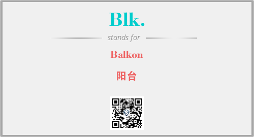 上述内容是“Balkon”作为“Blk.”的缩写,解释为“阳台”时的信息,以及英文缩略词Blk.所代表的英文单词,其对应的中文拼音、详细解释以及在英文中的流行度和相关分类、应用领域及应用示例等。