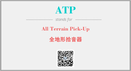 英文缩略词“ATP”经常作为“All Terrain Pick-Up”的英文缩写来使用,中文表示:“全地形拾音器”。本文将详细介绍英文缩写词ATP所代表英文单词,其对应的中文拼音、详细解释以及在英语中的流行度。此外,还有关于缩略词ATP的分类、应用领域及相关应用示例等。