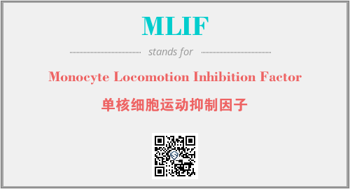 上述内容是“Monocyte Locomotion Inhibition Factor”作为“MLIF”的缩写,解释为“单核细胞运动抑制因子”时的信息,以及英文缩略词MLIF所代表的英文单词,其对应的中文拼音、详细解释以及在英文中的流行度和相关分类、应用领域及应用示例等。
