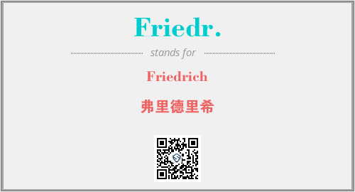 上述内容是“Friedrich”作为“Friedr.”的缩写,解释为“弗里德里希”时的信息,以及英文缩略词Friedr.所代表的英文单词,其对应的中文拼音、详细解释以及在英文中的流行度和相关分类、应用领域及应用示例等。