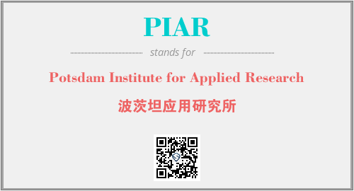 以上为Potsdam Institute for Applied Research英文缩略词PIAR的中文解释,以及该英文缩写在英语的流行度、分类和应用领域方面的信息。