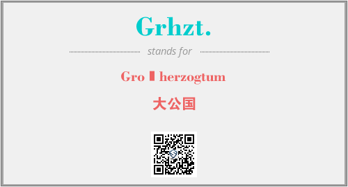 英文缩略词“Grhzt.”经常作为“Großherzogtum”的英文缩写来使用,中文表示:“大公国”。本文将详细介绍英文缩写词Grhzt.所代表英文单词,其对应的中文拼音、详细解释以及在英语中的流行度。此外,还有关于缩略词Grhzt.的分类、应用领域及相关应用示例等。