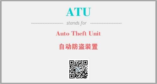 英文缩略词“ATU”经常作为“Auto Theft Unit”的英文缩写来使用,中文表示:“自动防盗装置”。本文将详细介绍英文缩写词ATU所代表英文单词,其对应的中文拼音、详细解释以及在英语中的流行度。此外,还有关于缩略词ATU的分类、应用领域及相关应用示例等。