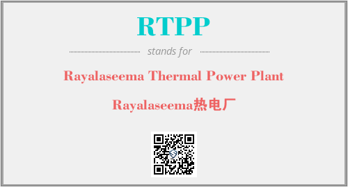 英文缩略词“RTPP”经常作为“Rayalaseema Thermal Power Plant”的英文缩写来使用,中文表示:“Rayalaseema热电厂”。本文将详细介绍英文缩写词RTPP所代表英文单词,其对应的中文拼音、详细解释以及在英语中的流行度。此外,还有关于缩略词RTPP的分类、应用领域及相关应用示例等。