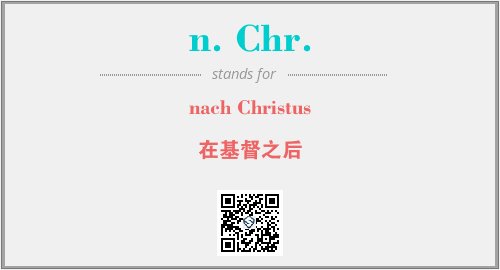 上述内容是“nach Christus”作为“n. Chr.”的缩写,解释为“在基督之后”时的信息,以及英文缩略词n. Chr.所代表的英文单词,其对应的中文拼音、详细解释以及在英文中的流行度和相关分类、应用领域及应用示例等。