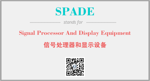 上述内容是“Signal Processor And Display Equipment”作为“SPADE”的缩写,解释为“信号处理器和显示设备”时的信息,以及英文缩略词SPADE所代表的英文单词,其对应的中文拼音、详细解释以及在英文中的流行度和相关分类、应用领域及应用示例等。