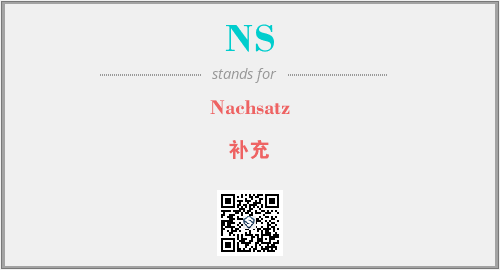 英文缩略词“NS”经常作为“Nachsatz”的英文缩写来使用,中文表示:“补充”。本文将详细介绍英文缩写词NS所代表英文单词,其对应的中文拼音、详细解释以及在英语中的流行度。此外,还有关于缩略词NS的分类、应用领域及相关应用示例等。