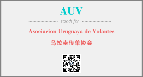 上述内容是“Asociacion Uruguaya de Volantes”作为“AUV”的缩写,解释为“乌拉圭传单协会”时的信息,以及英文缩略词AUV所代表的英文单词,其对应的中文拼音、详细解释以及在英文中的流行度和相关分类、应用领域及应用示例等。