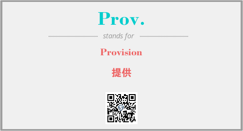 英文缩略词“Prov.”经常作为“Provision”的英文缩写来使用,中文表示:“提供”。本文将详细介绍英文缩写词Prov.所代表英文单词,其对应的中文拼音、详细解释以及在英语中的流行度。此外,还有关于缩略词Prov.的分类、应用领域及相关应用示例等。