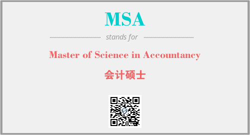 上述内容是“Master of Science in Accountancy”作为“MSA”的缩写,解释为“会计硕士”时的信息,以及英文缩略词MSA所代表的英文单词,其对应的中文拼音、详细解释以及在英文中的流行度和相关分类、应用领域及应用示例等。