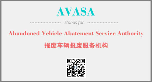 上述内容是“Abandoned Vehicle Abatement Service Authority”作为“AVASA”的缩写,解释为“报废车辆报废服务机构”时的信息,以及英文缩略词AVASA所代表的英文单词,其对应的中文拼音、详细解释以及在英文中的流行度和相关分类、应用领域及应用示例等。