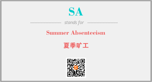 以上为Summer Absenteeism英文缩略词SA的中文解释,以及该英文缩写在英语的流行度、分类和应用领域方面的信息。