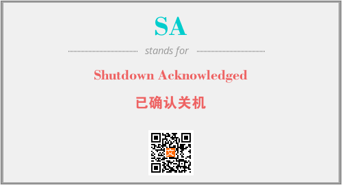 上述内容是“Shutdown Acknowledged”作为“SA”的缩写,解释为“已确认关机”时的信息,以及英文缩略词SA所代表的英文单词,其对应的中文拼音、详细解释以及在英文中的流行度和相关分类、应用领域及应用示例等。