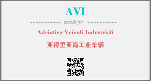 以上为Adriatica Veicoli Industriali英文缩略词AVI的中文解释,以及该英文缩写在英语的流行度、分类和应用领域方面的信息。
