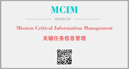 英文缩略词“MCIM”经常作为“Mission Critical Information Management”的英文缩写来使用,中文表示:“关键任务信息管理”。本文将详细介绍英文缩写词MCIM所代表英文单词,其对应的中文拼音、详细解释以及在英语中的流行度。此外,还有关于缩略词MCIM的分类、应用领域及相关应用示例等。