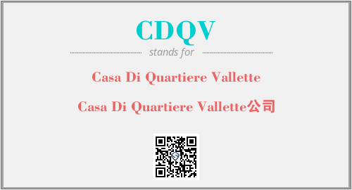 上述内容是“Casa Di Quartiere Vallette”作为“CDQV”的缩写,解释为“Casa Di Quartiere Vallette公司”时的信息,以及英文缩略词CDQV所代表的英文单词,其对应的中文拼音、详细解释以及在英文中的流行度和相关分类、应用领域及应用示例等。