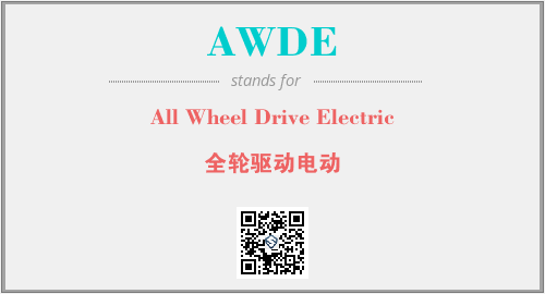 英文缩略词“AWDE”经常作为“All Wheel Drive Electric”的英文缩写来使用,中文表示:“全轮驱动电动”。本文将详细介绍英文缩写词AWDE所代表英文单词,其对应的中文拼音、详细解释以及在英语中的流行度。此外,还有关于缩略词AWDE的分类、应用领域及相关应用示例等。