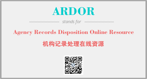 上述内容是“Agency Records Disposition Online Resource”作为“ARDOR”的缩写,解释为“机构记录处理在线资源”时的信息,以及英文缩略词ARDOR所代表的英文单词,其对应的中文拼音、详细解释以及在英文中的流行度和相关分类、应用领域及应用示例等。