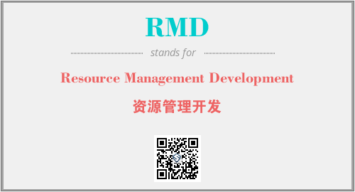 英文缩略词“RMD”经常作为“Resource Management Development”的英文缩写来使用,中文表示:“资源管理开发”。本文将详细介绍英文缩写词RMD所代表英文单词,其对应的中文拼音、详细解释以及在英语中的流行度。此外,还有关于缩略词RMD的分类、应用领域及相关应用示例等。