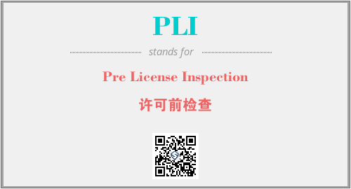 英文缩略词“PLI”经常作为“Pre License Inspection”的英文缩写来使用,中文表示:“许可前检查”。本文将详细介绍英文缩写词PLI所代表英文单词,其对应的中文拼音、详细解释以及在英语中的流行度。此外,还有关于缩略词PLI的分类、应用领域及相关应用示例等。