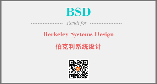 上述内容是“Berkeley Systems Design”作为“BSD”的缩写,解释为“伯克利系统设计”时的信息,以及英文缩略词BSD所代表的英文单词,其对应的中文拼音、详细解释以及在英文中的流行度和相关分类、应用领域及应用示例等。