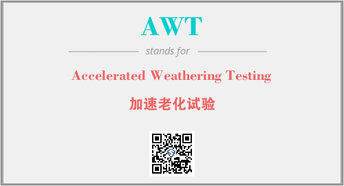 英文缩略词“AWT”经常作为“Accelerated Weathering Testing”的英文缩写来使用,中文表示:“加速老化试验”。本文将详细介绍英文缩写词AWT所代表英文单词,其对应的中文拼音、详细解释以及在英语中的流行度。此外,还有关于缩略词AWT的分类、应用领域及相关应用示例等。