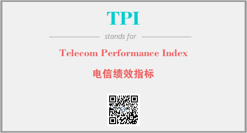 上述内容是“Telecom Performance Index”作为“TPI”的缩写,解释为“电信绩效指标”时的信息,以及英文缩略词TPI所代表的英文单词,其对应的中文拼音、详细解释以及在英文中的流行度和相关分类、应用领域及应用示例等。
