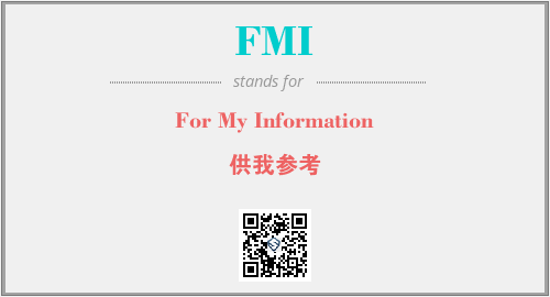 英文缩略词“FMI”经常作为“For My Information”的英文缩写来使用,中文表示:“供我参考”。本文将详细介绍英文缩写词FMI所代表英文单词,其对应的中文拼音、详细解释以及在英语中的流行度。此外,还有关于缩略词FMI的分类、应用领域及相关应用示例等。