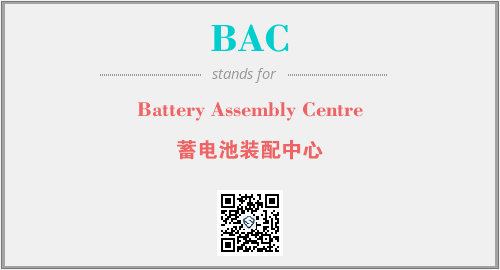 上述内容是“Battery Assembly Centre”作为“BAC”的缩写,解释为“蓄电池装配中心”时的信息,以及英文缩略词BAC所代表的英文单词,其对应的中文拼音、详细解释以及在英文中的流行度和相关分类、应用领域及应用示例等。