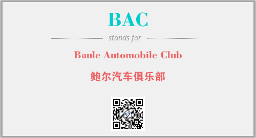 上述内容是“Baule Automobile Club”作为“BAC”的缩写,解释为“鲍尔汽车俱乐部”时的信息,以及英文缩略词BAC所代表的英文单词,其对应的中文拼音、详细解释以及在英文中的流行度和相关分类、应用领域及应用示例等。