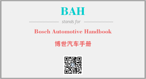 上述内容是“Bosch Automotive Handbook”作为“BAH”的缩写,解释为“博世汽车手册”时的信息,以及英文缩略词BAH所代表的英文单词,其对应的中文拼音、详细解释以及在英文中的流行度和相关分类、应用领域及应用示例等。