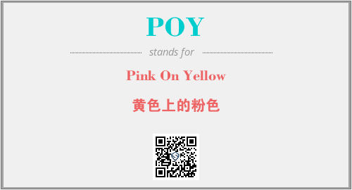 上述内容是“Pink On Yellow”作为“POY”的缩写,解释为“黄色上的粉色”时的信息,以及英文缩略词POY所代表的英文单词,其对应的中文拼音、详细解释以及在英文中的流行度和相关分类、应用领域及应用示例等。